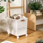 Meet the HOUZE Rolling Storage Basket – your stylish. space-saving solution. Crafted from high-quality materials. it’s lightweight yet sturdy. perfect for decluttering any space. With smooth wheels and a stackable design. organising is a breeze. Embrace a tidier. more organised home with the elegance and convenience of HOUZE.